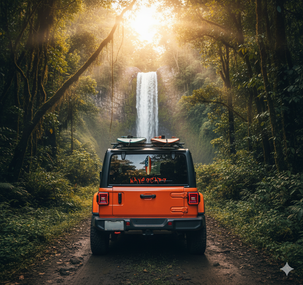 This “Stars & Scars” edition features a cracked American flag surfboard paired with bold WAVESCARS graffiti—perfect for Jeeps, surf gear, laptops, and anywhere you want to show pride with attitude.