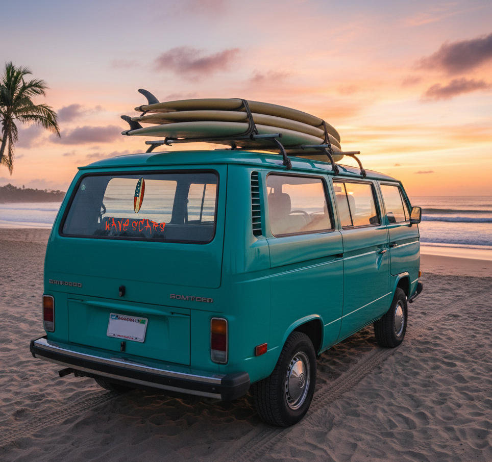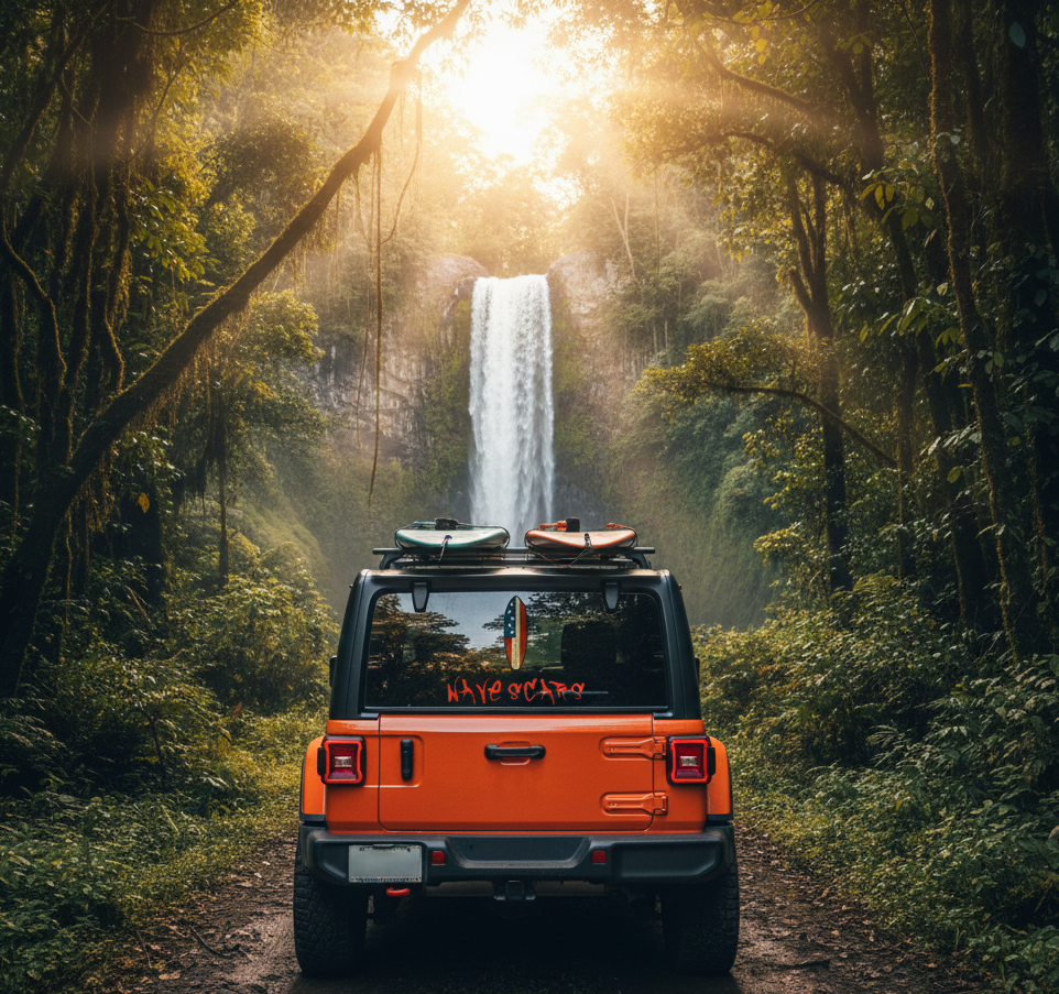 This “Stars & Scars” edition features a cracked American flag surfboard paired with bold WAVESCARS graffiti—perfect for Jeeps, surf gear, laptops, and anywhere you want to show pride with attitude.